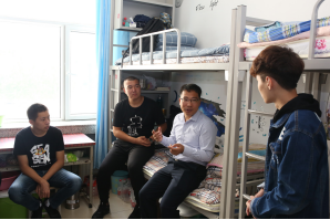 任国领院长询问了学生们的家乡位置,关心他们是否能够适应大学的独立自主生活,要求同学们要保持融洽的寝室关系,相互关心,互相帮助,彼此督促,注意寝室用电安全,不使用违规电器。任国领院长还对大学的学习生活作了详细介绍与说明。大学又是一个新的开始,大学的学习方式是自主学习,要控制好自己的学习时间,建立完善的知识体系,多与老师探讨交流,切不可沉迷游戏。他还鼓励学生规划好自己的大学学习生活,积极参与考研。任国领院长希望同学们积极参与社团活动和院系及校级组织的活动中,丰富自己的课余生活。