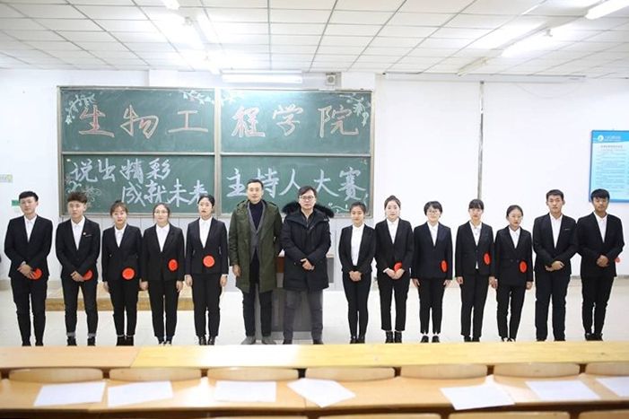 为了进一步丰富同学们的课余生活,增强大学生综合素质,展示当今大学生的青春风采,传承大庆精神。伟德国际victor1946于2018年12月6日18时50分在主楼1-4举行了“说出精彩,成就未来”主持人大赛。学生辅导员苏斯朗杰老师、大庆油田电视台油田新闻主播张毅老师以及团学组织各部部长出席此次活动并担任评委,田春月同学和宋余辉同学为本次活动主持人,18级全体同学出席并观摩了此次大赛。