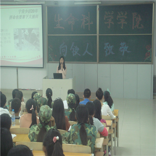 (本报讯 张晓芬)为了让同学们了解铁人,学习大庆精神、铁人精神的内涵并将其落实到日常生活中,生命科学学院于2014年9月18日下午召开了“向铁人致敬”主题党课。本次会议的主讲人是12级学生党员刘佳琳,参加会议的有学生党支部书记常贺及2014级全体同学。