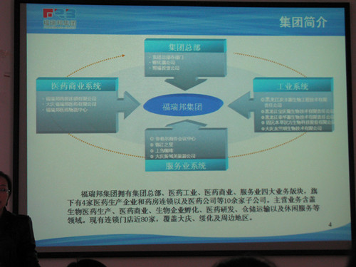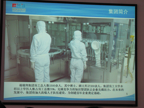 福瑞邦集团人力资源部谢坤经理给应聘学生做了一场生动的报告,她详细地介绍了公司发展的历程及未来规划,还详细讲解了公司四大平台、六大药厂及80余家连锁药店的经营模式、管理方法和对外合作情况。此外还介绍了福瑞邦的薪资待遇、工作资源、生活条件。谈到我们13届毕业生在福瑞邦的工作状况,谢经理和孙主任是大加陈赞!