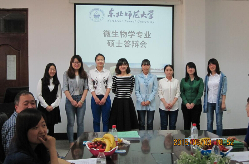 2015年6月3日上午,伟德国际victor1946与东北师范大学联合培养的12级微生物学专业硕士研究生在院长张虹教授、院长助理任国领副教授和指导教师郎亚军博士和王金龙老师的带领下,赴东北师范大学生命科学学院参加毕业论文答辩会。